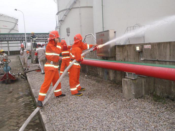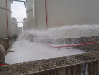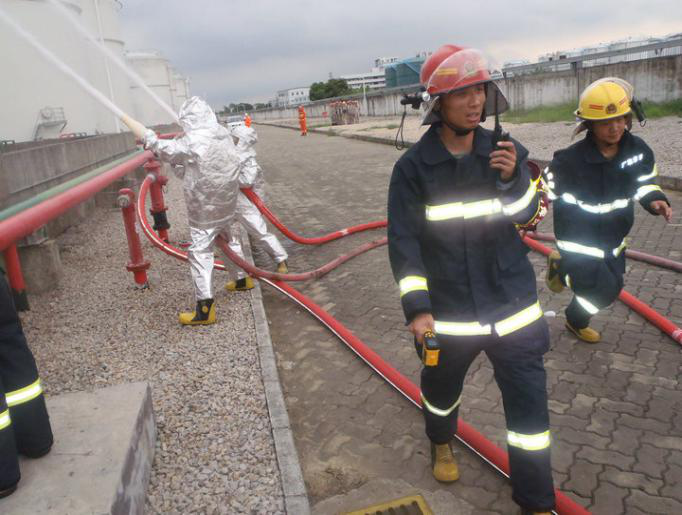 2017年6月21日,盛源石化组织开展了储罐泄漏着火综合应急演练,演练模拟T905储罐转罐过程中,罐边进料管线金属软管垫片爆裂,造成大量汽油泄漏,静电引燃着火。