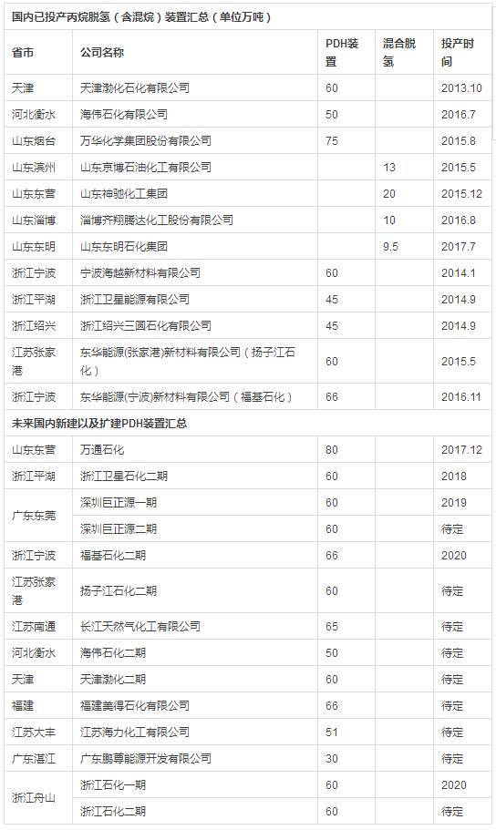 近年来,丙烷脱氢工艺在中国迅速发展,产能扩张速度惊人,逐渐成为丙烯重要来源之一。自2013年10月,随着天津渤化60万吨/年的丙烷脱氢装置投产运行,丙烷脱氢装置在国内正式拉开序幕。此后的几年里,丙烷脱氢装置在国内遍地开花,迅速发展,主要集中在华东的江浙地区、华北地区以及山东地区,而且近两三年混合烷烃脱氢这种更加灵活的装置在山东地区陆续投产运行。至今,国内丙烷脱氢(含混烷)制丙烯总产能达到513.5万吨。但是从下表可以看出,华南地区尚无丙烷脱氢装置,深圳304永利集团丙烷脱氢装置建成后,将填补华南地区丙烷脱氢制高性能聚丙烯及下游加工项目的空缺,给当地化工企业提供优质的化工原料。
