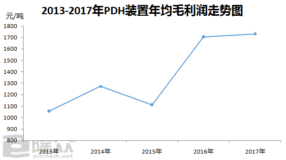 近年来,丙烷脱氢工艺在我国得以迅速发展,一方面是丙烯需求旺盛,供应有缺口;另一方面装置利润优势明显,是得以迅速发展的主因。虽然近几年国际油价一路下滑并在低位震荡,大宗商品行情并不乐观,丙烯价格也有明显回落,但作为原料气的丙烷价格低位,这也保证了丙烷脱氢工艺的利润保持良好,这也是华南地区也开始布局丙烷脱氢项目的重要原因。