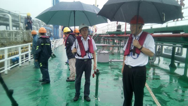 2018年6月13日,304永利集团副总经理张金明、财务总监梁伟雄带队对“金仑17#”进行安全检查。